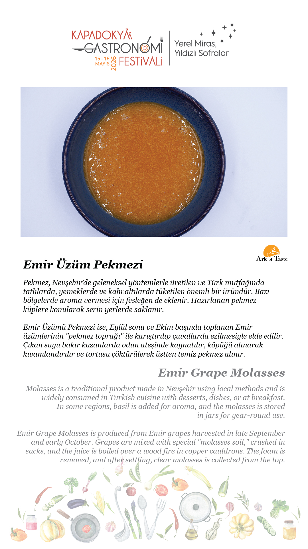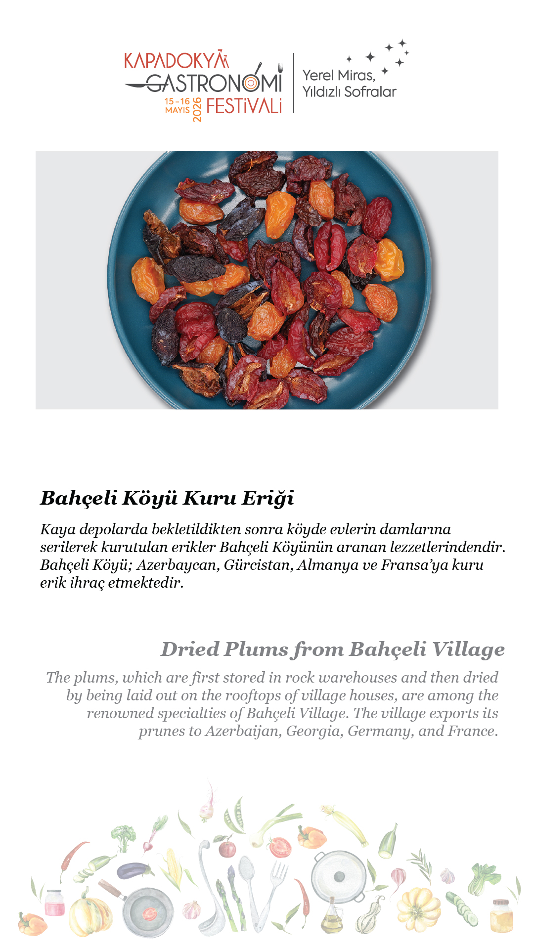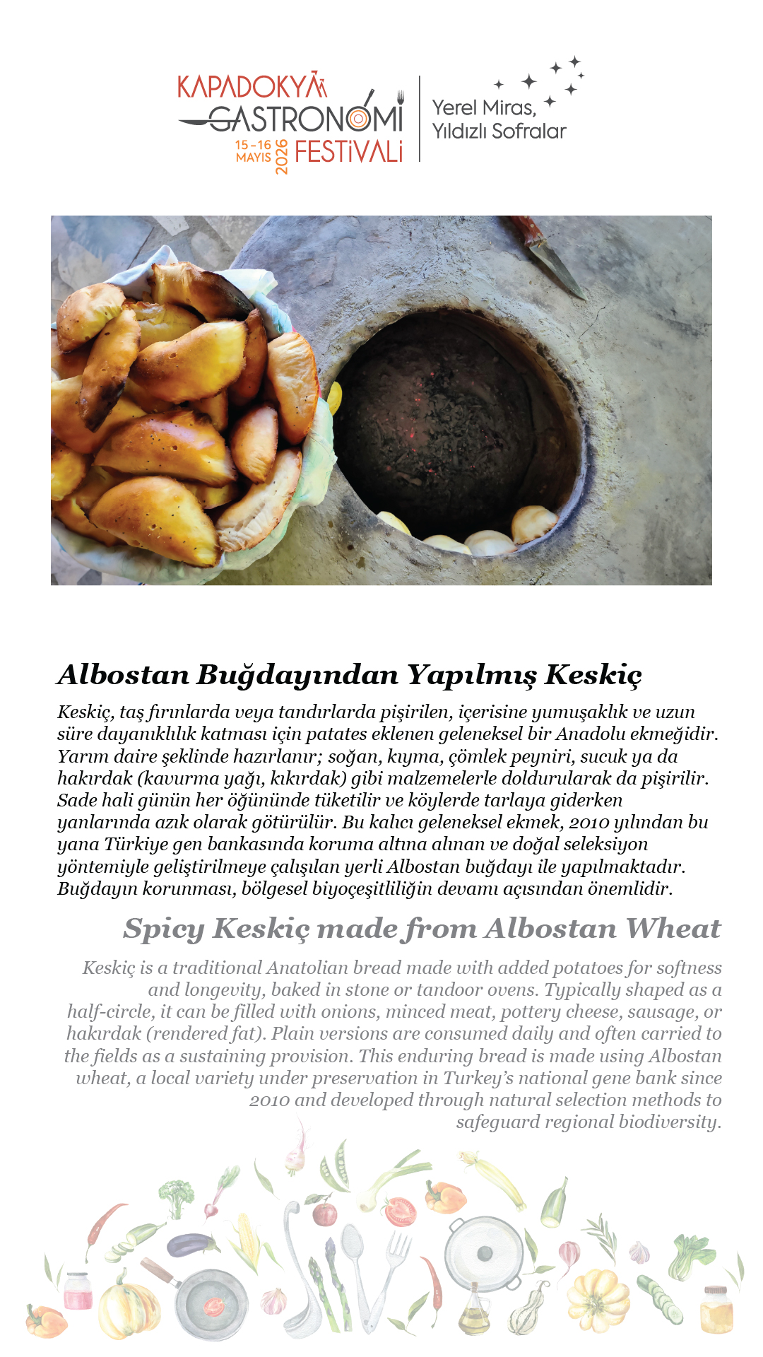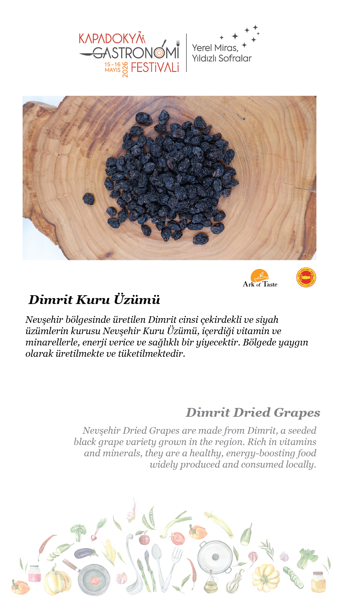 15-16 Mayıs 2026 tarihlerinde, beşincisini gerçekleştireceğimiz Kapadokya Gastronomi Festivali’nde temamız olan “Yerel Miras, Yıldızlı Sofralar”ın hikâyesini paylaşmak için soframıza buyur ediyor; “sofra hazır” diyoruz.